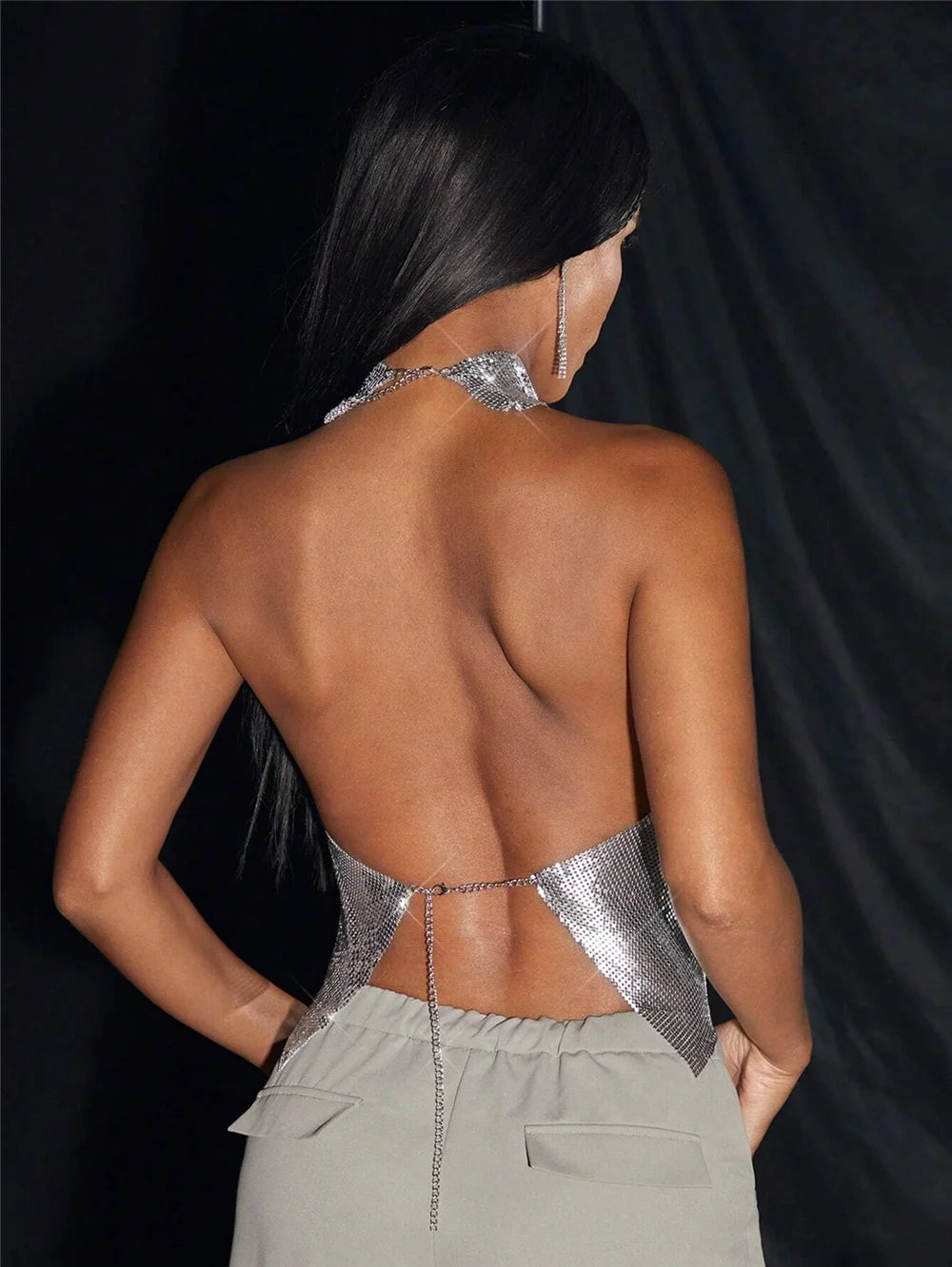 Metal Sequin Halter Top